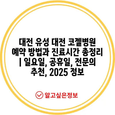 대전 유성 대전 코젤병원 예약 방법과 진료시간 총정리 | 일요일, 공휴일, 전연락 추천, 2025 정보 에 대해 자주 묻는 질문 TOP 5