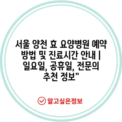✅ 양천 효 요양병원의 예약 방법 및 자세한 진료시간을 알아보세요.