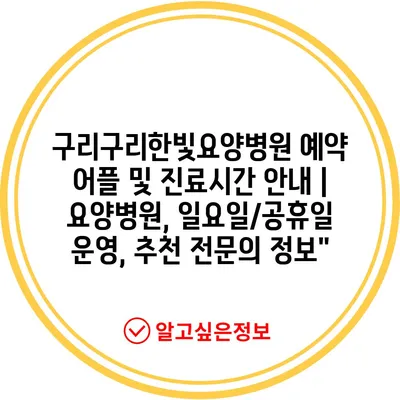 구리구리한빛요양병원 예약 어플 및 진료시간 공지 | 요양병원, 일요일/공휴일 운영, 추천 전연락 정보에 대해 자주 묻는 질문 TOP 5