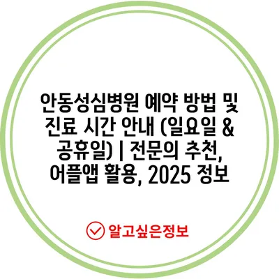 안동성심병원 예약 방법 및 진료 시간 공지 (일요일 & 공휴일) | 전연락 추천, 어플앱 활용, 2025 정보에 대한 내용을 소개합니다.