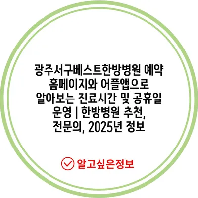 광주서구베스트한방병원 예약 홈페이지와 어플앱으로 알아보는 진료시간 및 공휴일 운영 | 한방병원 추천, 전연락, 2025년 정보 에 대해 자주 묻는 질문 TOP 5