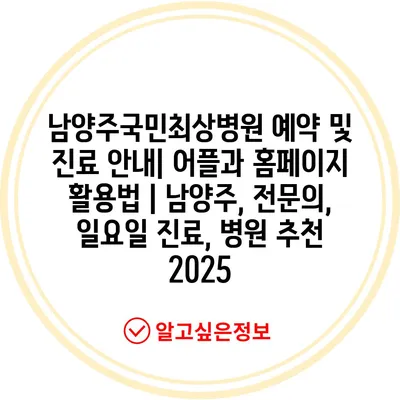 남양주국민최상병원 예약 및 진료 공지| 어플과 홈페이지 활용법 | 남양주, 전연락, 일요일 진료, 병원 추천 2025 에 대해 자주 묻는 질문 TOP 5