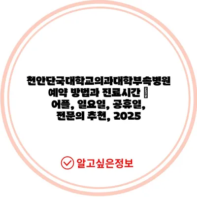 천안단국대학교의과대학부속병원 예약 방법과 진료시간 | 어플, 일요일, 공휴일, 전연락 추천, 2025 에 대해 자주 묻는 질문 TOP 5
