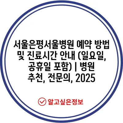 서울은평서울병원 예약 방법 및 진료시간 공지 (일요일, 공휴일 포함) | 병원 추천, 전연락, 2025 에 대해 자주 묻는 질문 TOP 5