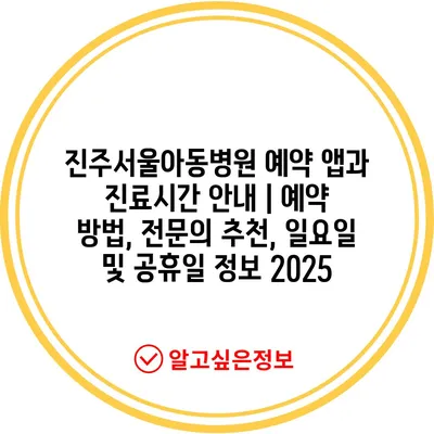 진주서울아동병원 예약 앱과 진료시간 공지 | 예약 방법, 전연락 추천, 일요일 및 공휴일 정보 2025