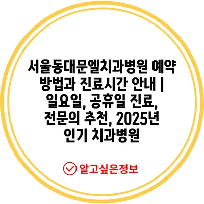 서울동대문엘치과병원 예약 방법과 진료시간 공지 | 일요일, 공휴일 진료, 전연락 추천, 2025년 인기 치과병원 에 대해 자주 묻는 질문 TOP 5