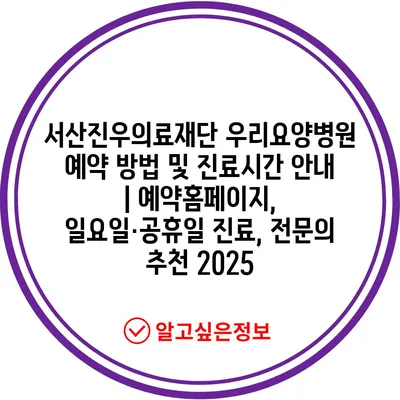 서산진우의료재단 우리요양병원 예약 방법 및 진료시간 공지 | 예약홈페이지, 일요일·공휴일 진료, 전연락 추천 2025에 대해 알아보겠습니다.