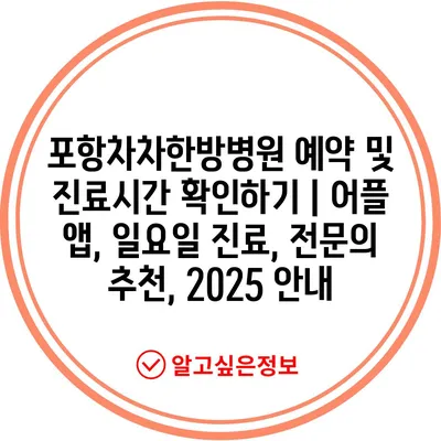포항차차한방병원 예약 및 진료시간 확인하기 | 어플 앱, 일요일 진료, 전연락 추천, 2025 공지