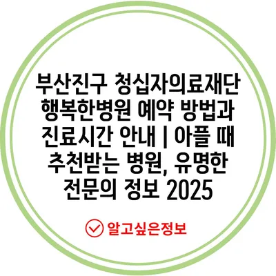부산진구 청십자의료재단 행복한병원 예약 방법과 진료시간 공지 | 아플 때 추천받는 병원, 유명한 전연락 정보 2025 에 대해 자주 묻는 질문 TOP 5