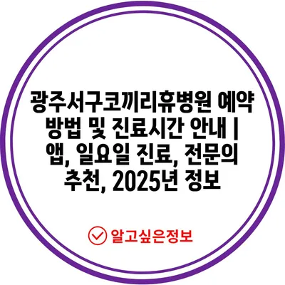 광주서구코끼리휴병원 예약 방법 및 진료시간 공지 | 앱, 일요일 진료, 전연락 추천, 2025년 정보 에 대해 자주 묻는 질문 TOP 5