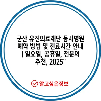 군산 유진의료재단 동서병원 예약 방법 및 진료시간 공지 | 일요일, 공휴일, 전연락 추천, 2025″ 에 대해 자주 묻는 질문 TOP 5