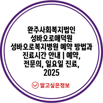 완주사회복지법인 성바오로애덕원 성바오로복지병원 예약 방법과 진료시간 안내 | 예약, 전문의, 일요일 진료, 2025