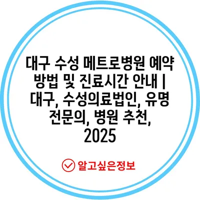 대구 수성 메트로병원 예약 방법 및 진료시간 공지 | 대구, 수성의료법인, 유명 전연락, 병원 추천, 2025 에 대해 자주 묻는 질문 TOP 5