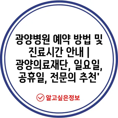 ✅ 광양병원의 예약 방법과 진료시간을 지금 바로 알아보세요.