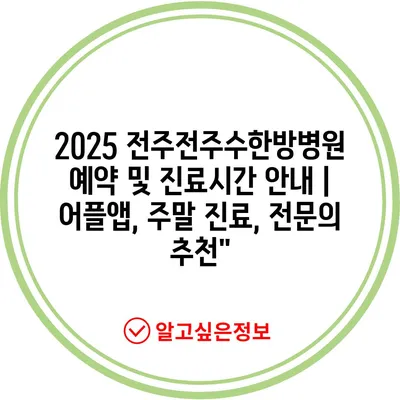 ✅ 전주수한방병원의 진료시간과 예약 방법을 자세히 알아보세요.