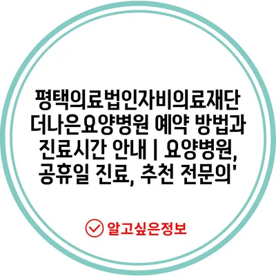 평택의료법인자비의료재단 더나은요양병원 예약 방법과 진료시간 공지 | 요양병원, 공휴일 진료, 추천 전연락’ 에 대해 자주 묻는 질문 TOP 5