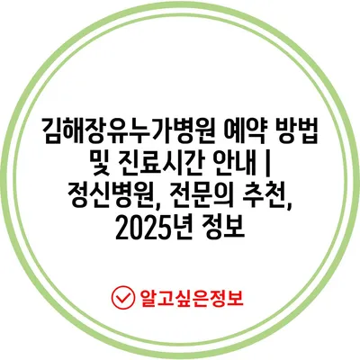 김해장유누가병원 예약 방법 및 진료시간 공지 | 정신병원, 전연락 추천, 2025년 정보 에 대해 자주 묻는 질문 TOP 5