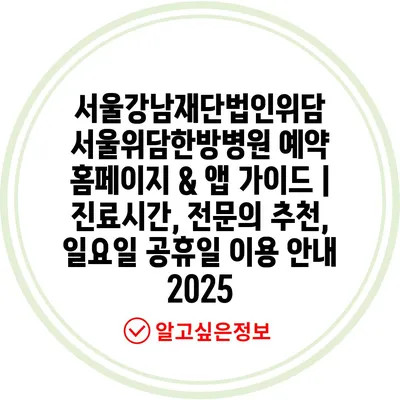 서울강남재단법인위담 서울위담한방병원 예약 홈페이지 & 앱 설명서 | 진료시간, 전연락 추천, 일요일 공휴일 이용 공지 2025에 대해 자주 묻는 질문 TOP 5