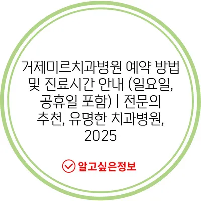 ✅ 거제미르치과병원의 예약 방법과 진료시간을 자세히 알아보세요.