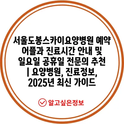 서울도봉스카이요양병원 예약 어플과 진료시간 안내 및 일요일 공휴일 전문의 추천 | 요양병원, 진료정보, 2025년 최신 가이드