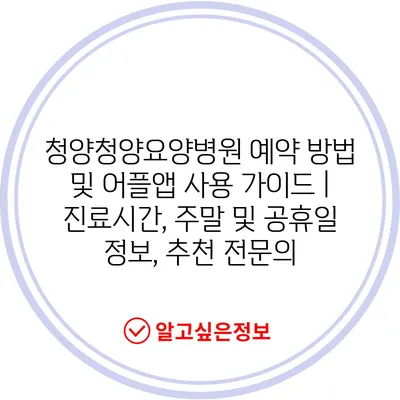 ✅ 청양청양요양병원 예약 방법과 팁을 지금 바로 알아보세요!