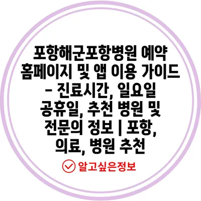 ✅ 포항해군포항병원의 진료시간과 예약 방법을 꼭 확인해 보세요.