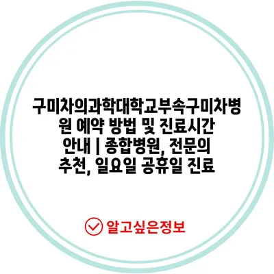 ✅ 구미차병원의 예약 방법과 진료시간을 쉽게 알아보세요!
