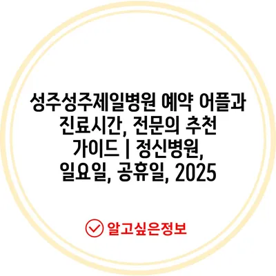 ✅ 성주성주제일병원의 예약 방법과 진료시간을 지금 바로 알아보세요.