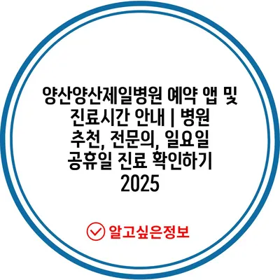 ✅ 양산제일병원 예약과 진료시간을 쉽게 확인해보세요.