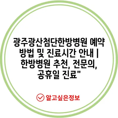 ✅ 광주광산첨단한방병원 예약 방법을 지금 바로 알아보세요!