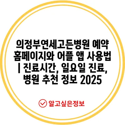 의정부연세고든병원 예약 홈페이지와 어플 앱 사용법 | 진료시간, 일요일 진료, 병원 추천 정보 2025에 대해 알아보겠습니다.