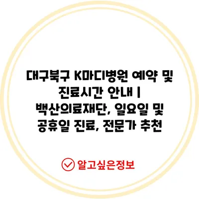 대구북구 K마디병원 예약 및 진료시간 공지 | 백산의료재단, 일요일 및 공휴일 진료, 전문가 추천에 대해 자주 묻는 질문 TOP 5