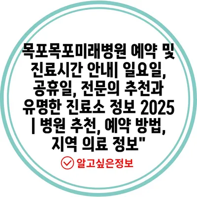 목포목포미래병원 예약 및 진료시간 공지| 일요일, 공휴일, 전연락 추천과 유명한 진료소 정보 2025 | 병원 추천, 예약 방법, 지역 의료 정보
