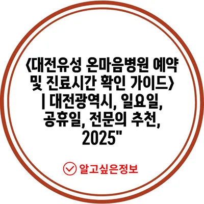 <대전유성 온마음병원 예약 및 진료시간 확인 설명서> | 대전광역시, 일요일, 공휴일, 전연락 추천, 2025″ 에 대해 자주 묻는 질문 TOP 5