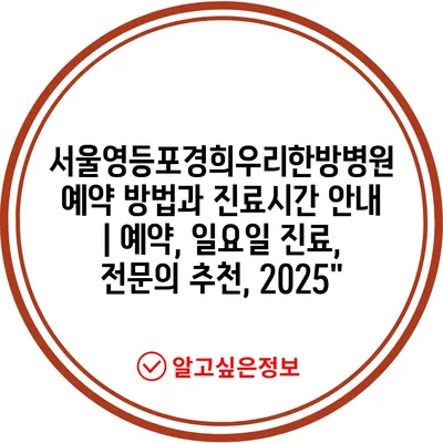 ✅ 서울영등포경희우리한방병원의 예약 방법과 진료시간을 자세히 알아보세요.