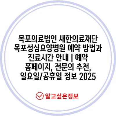 목포의료법인 새한의료재단 목포성심요양병원 예약 방법과 진료시간 공지 | 예약 홈페이지, 전연락 추천, 일요일/공휴일 정보 2025