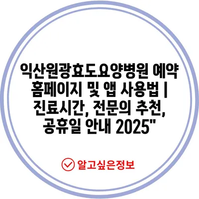 익산원광효도요양병원 예약 홈페이지 및 앱 사용법 | 진료시간, 전연락 추천, 공휴일 공지 2025에 대해 자주 묻는 질문 TOP 5