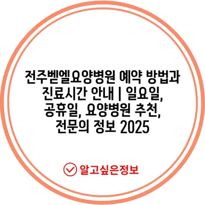 전주벧엘요양병원 예약 방법과 진료시간 공지 | 일요일, 공휴일, 요양병원 추천, 전연락 정보 2025 에 대해 자주 묻는 질문 TOP 5
