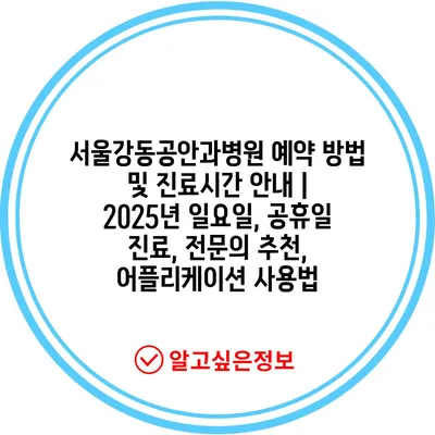 서울강동공안과병원 예약 방법 및 진료시간 공지 | 2025년 일요일, 공휴일 진료, 전연락 추천, 어플리케이션 사용법 에 대해 자주 묻는 질문 TOP 5