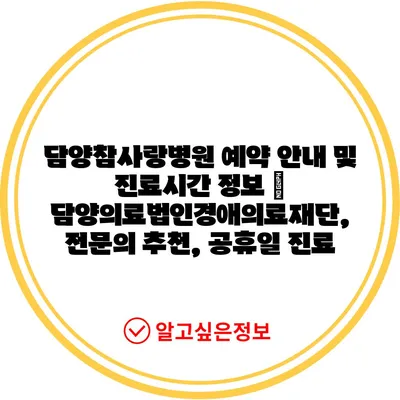 ✅ 담양참사랑병원의 진료 시간과 예약 방법을 알아보세요.