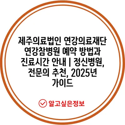 제주의료법인 연강의료재단 연강참병원 예약 방법과 진료시간 공지 | 정신병원, 전연락 추천, 2025년 설명서 에 대해 자주 묻는 질문 TOP 5