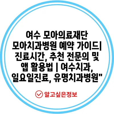 ✅ 여수 모아의료재단과 모아치과병원의 진료시간 및 예약 방법을 자세히 알아보세요.