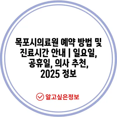 목포시의료원 예약 방법 및 진료시간 안내 | 일요일, 공휴일, 의사 추천, 2025 정보