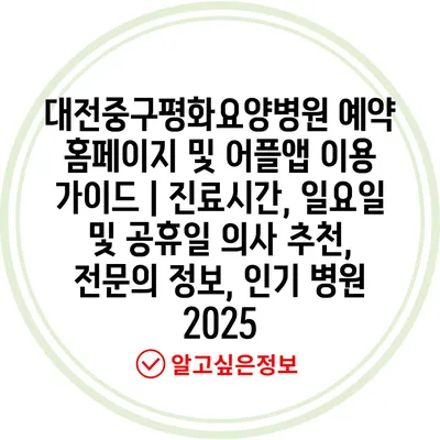 대전중구평화요양병원 예약 홈페이지 및 어플앱 이용 설명서 | 진료시간, 일요일 및 공휴일 의사 추천, 전연락 정보, 인기 병원 2025 에 대해 자주 묻는 질문 TOP 5