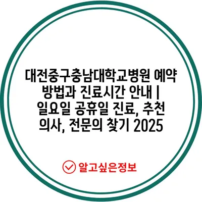 대전중구충남대학교병원 예약 방법과 진료시간 공지 | 일요일 공휴일 진료, 추천 의사, 전연락 찾기 2025에 대해 알아보겠습니다.