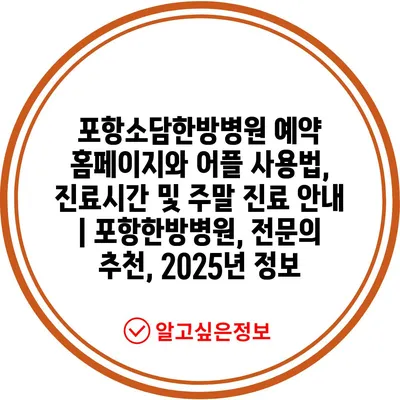 포항소담한방병원 예약 홈페이지와 어플 사용법, 진료시간 및 주말 진료 공지 | 포항한방병원, 전연락 추천, 2025년 정보 에 대해 자주 묻는 질문 TOP 5