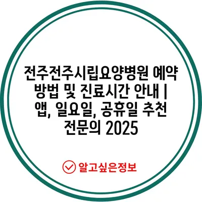 전주전주시립요양병원 예약 방법 및 진료시간 공지 | 앱, 일요일, 공휴일 추천 전연락 2025 에 대해 자주 묻는 질문 TOP 5