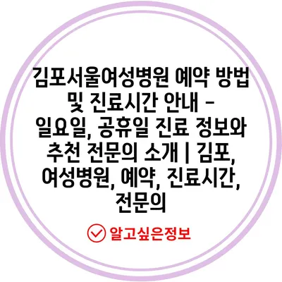 김포서울여성병원 예약 방법 및 진료시간 안내 – 일요일, 공휴일 진료 정보와 추천 전문의 소개 | 김포, 여성병원, 예약, 진료시간, 전문의