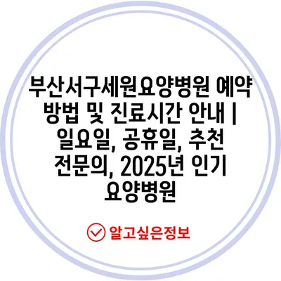 부산서구세원요양병원 예약 방법 및 진료시간 안내 | 일요일, 공휴일, 추천 전문의, 2025년 인기 요양병원