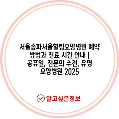서울송파서울힐링요양병원 예약 방법과 진료 시간 안내 | 공휴일, 전문의 추천, 유명 요양병원 2025